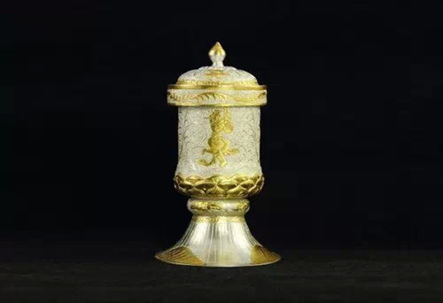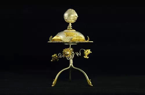 鎏金摩羯纹三足架银盐台