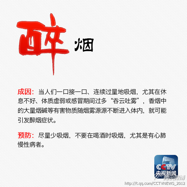 醉酒大家十分熟悉且经常见到,但你知道吗?醉油、醉饭、醉茶、醉烟的后果也同样不可小觑!它们各有什么症状?是怎么形成的?如何预防?戳图了解↓↓↓健康生活,合理饮食,远离这几宗"醉" 。