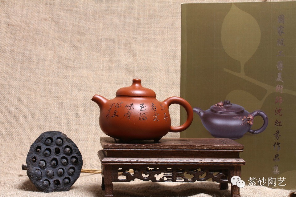 壶胚乃以清水泥为泥料,成型后再以红泥浆上 浆“壶表”,再让壶坏阴干入窑烧成;此作法在当时为早期壶很常见之泥料工艺壶身泡茶多日 颜色变朱红色,现代壶已甚少见此作法。
