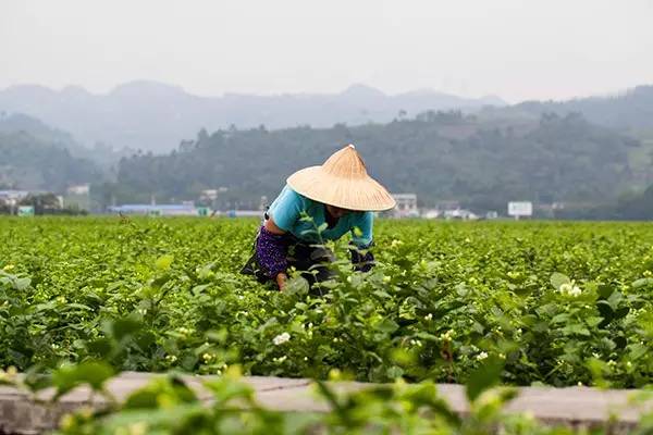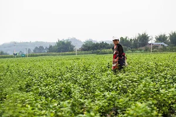 花田里为子乐宅采花的大姐,一天的劳作能换来80元工钱