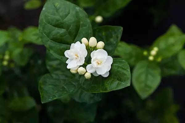 茉莉花被摊放开,随着夜晚的临近,逐渐绽放开来