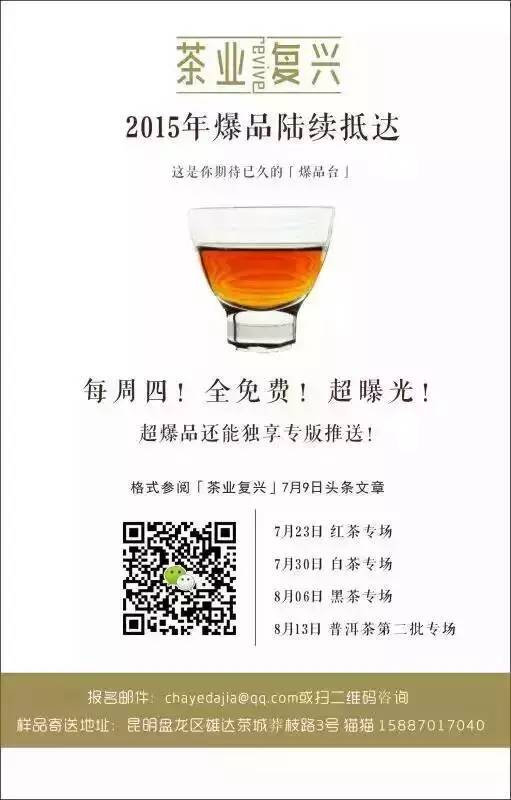 2015年7月9日,茶业复兴开启了首档茶界爆品评选。
