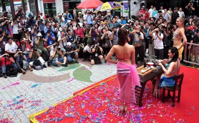 2013年6月,广州银利茶叶博览中心,比基尼泡茶。