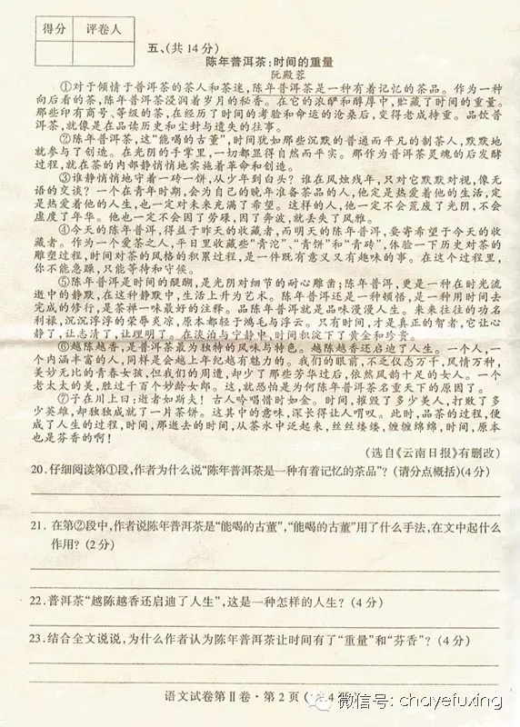 这篇文章曾于2005年被选入云南省高中会考试卷,是以“阅读理解题”的形式出现在成千上万考生眼前的,这从一个侧面反映了那个时代对于普洱茶的一个认知和回应。