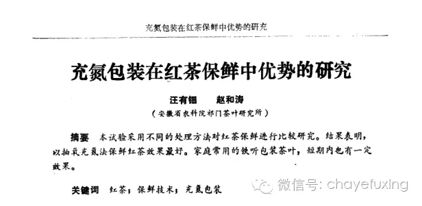 茶叶充氮气保鲜,其实不是什么新鲜事。1989年的时候,就有关于红茶包装里面充氮保鲜相关研究。更早的,在这里就不追溯了,1989年,我们的很多读者还没出生呢。