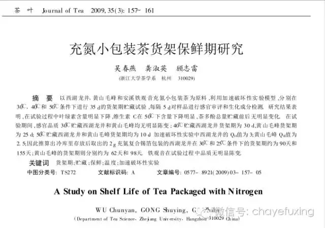 2009年,浙江大学茶学系的吴春燕等人也做过《充氮小包装茶货架保鲜期研究》。研究的过程和结论,有兴趣的读者可以去找论文来看,找不到论文的,可添加微信yangjingxi923索要。