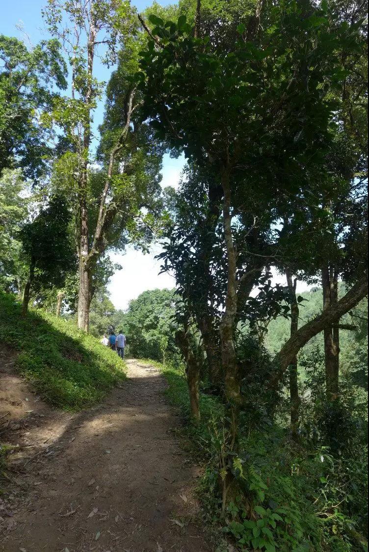 与这一路始终相伴的雨林高树不同。青龙山古茶园,也有很多参天大树杂居,但绝非密林,树与树之间保持着较远的距离,像是有人刻意将茶林之间的其它小树清洗过一般,有序而自然。