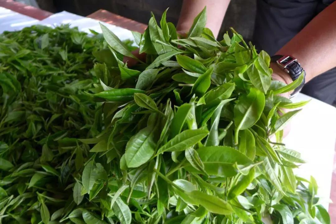 此前我就已经通知罗支书,按一芽三叶古树茶的采摘标准采好一些鲜叶,好用来示范炒制。但由于各种条件限制,罗支书表示无法采摘古树茶秋芽,只能采备十多年的小树茶代替。