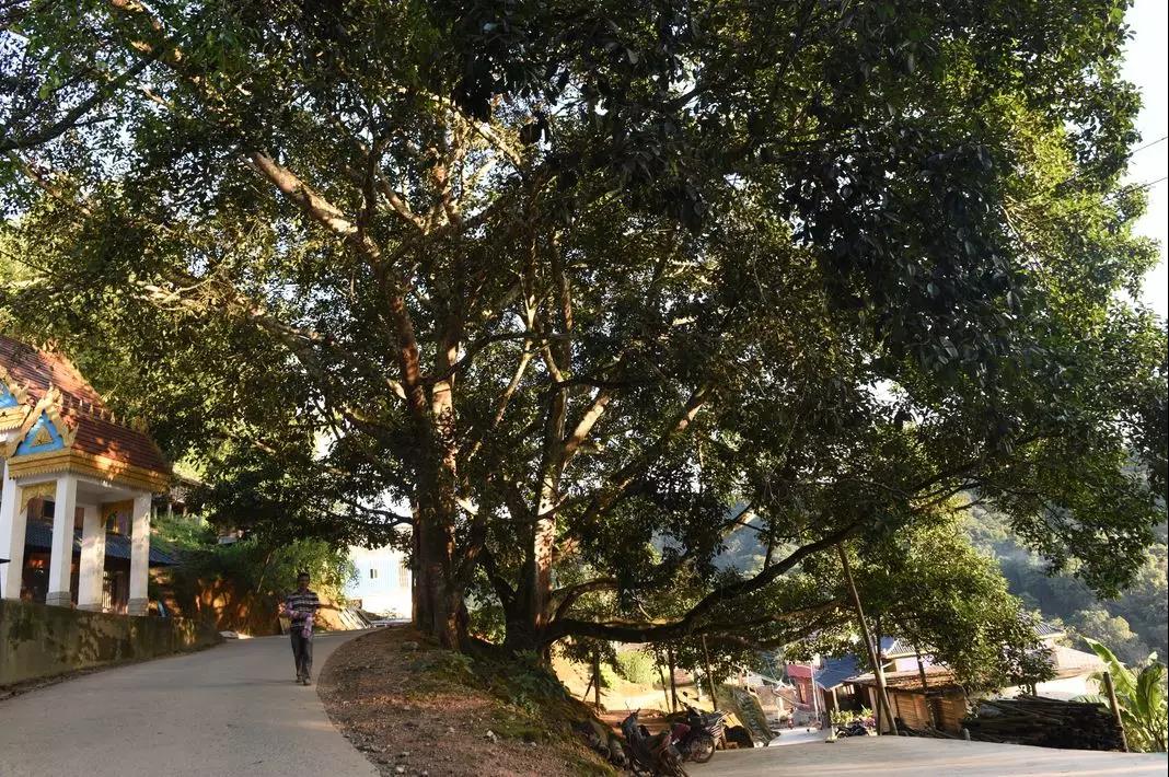 章朗!还未抵达时我便对这个颇有些冷幽默的地名充满了奇异的想象,现在他的面貌终于以茶王树为序曲渐次舒展。说起来,“章朗”名称的由来还颇有渊源,这里虽是布朗族寨子,但章朗却是傣语,意为“大象冻僵的地方”。传说一千四百多年前释加牟尼弟子玛哈烘乘象周游世界传经经过此地时,雨点和冰雹从天而降,玛哈烘只得夜宿恩巩跺多山(章朗总佛寺所在地),第二天发现白象被冻僵无法再继续前行,为了纪念其传教功德,玛哈烘便赐名此地为“章朗”,而因着总佛寺的贝叶经记录,章朗村寨有记录的历史也由此开启。