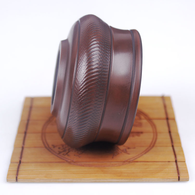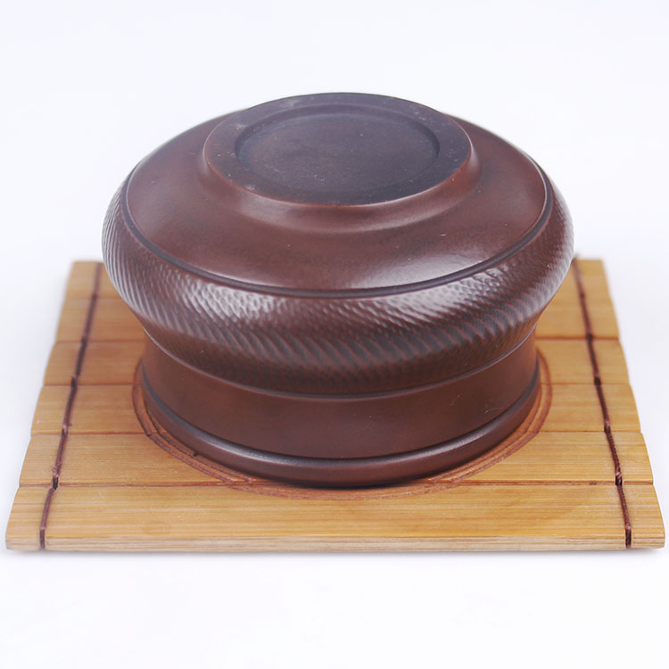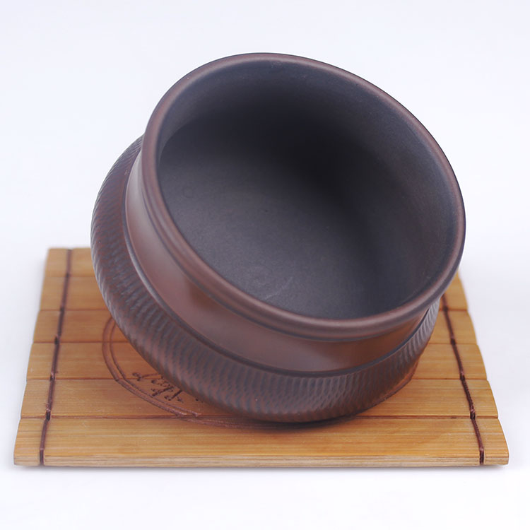 建水陶有上釉的产品,但称为建水紫陶的产品,是不上釉的,看上去比较亮是采用了建水紫陶特有的工艺“无釉磨光”,因为建水紫陶的泥料非常好,可以用沙石来打磨,用鹅卵石来抛光,因此建水紫陶虽然很漂亮,但不影响它的透气性。