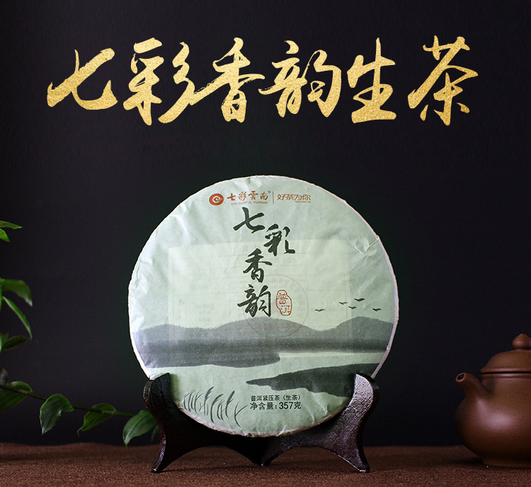 七彩香韵生茶选用云南著名高山大叶种茶区鲜嫩茶菁为原料,采用传统制茶技艺,由经验丰富的制茶人精心拼配而成。茶饼饼形周正;汤色绿黄明亮;香气纯正浓郁;滋味醇正回甘;静品此茗,香韵悠然。