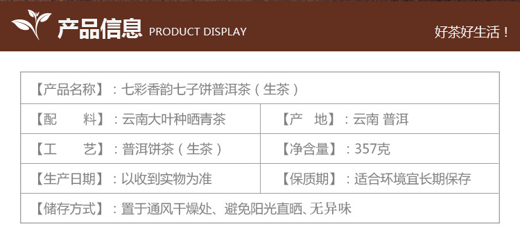 【规格】:357克/饼 7饼/提 28饼/件