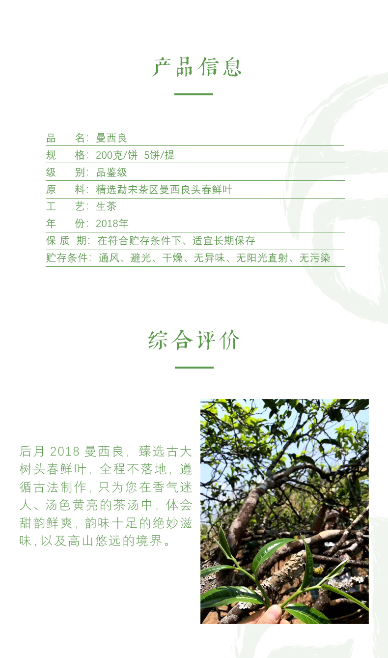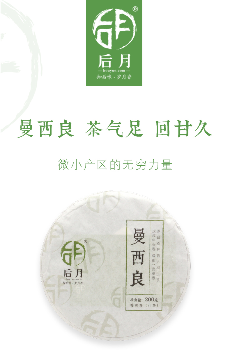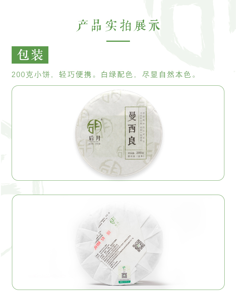 后月 曼西良 2018年 200g/饼 生茶 头春鲜叶守采 普洱茶