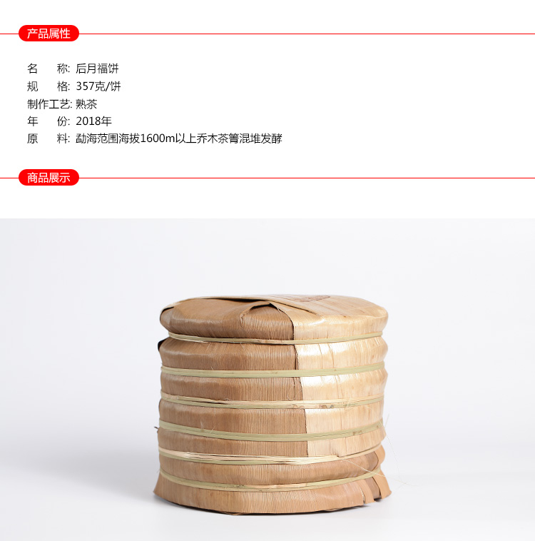 后月 福饼 普洱茶 熟茶 2018年/357克/饼 大树茶发酵
