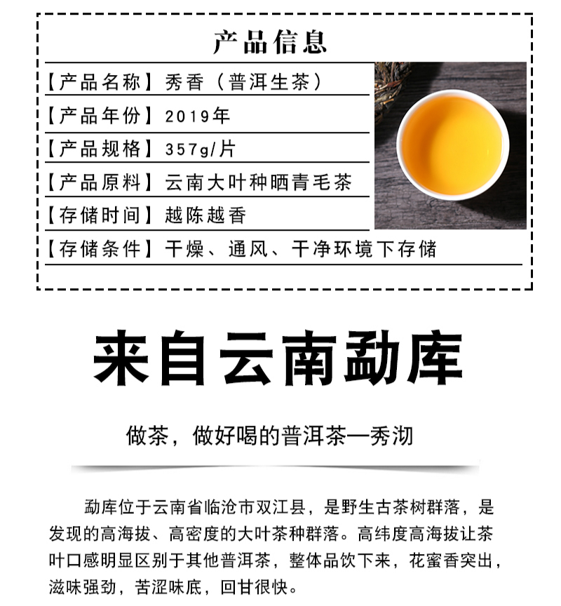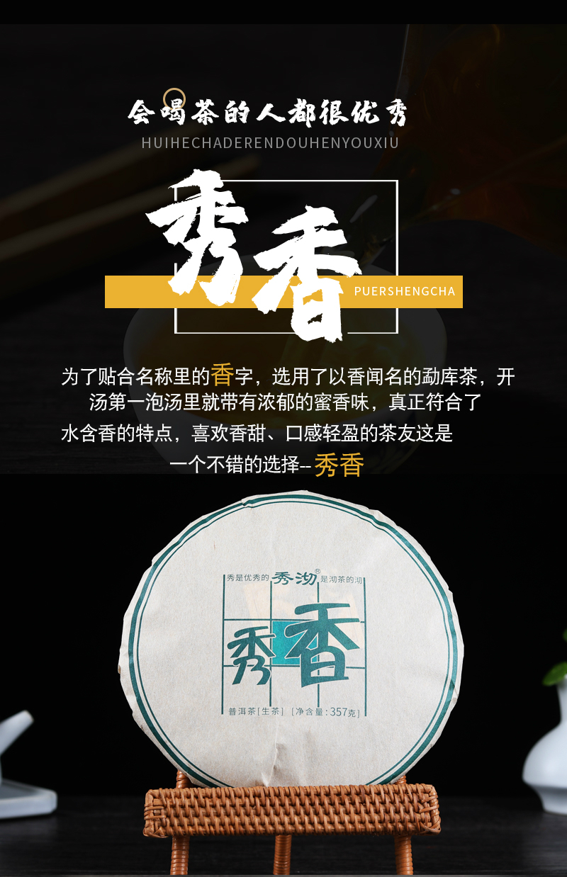 秀沏云南普洱茶 勐库老树原料 秀香生饼 357克