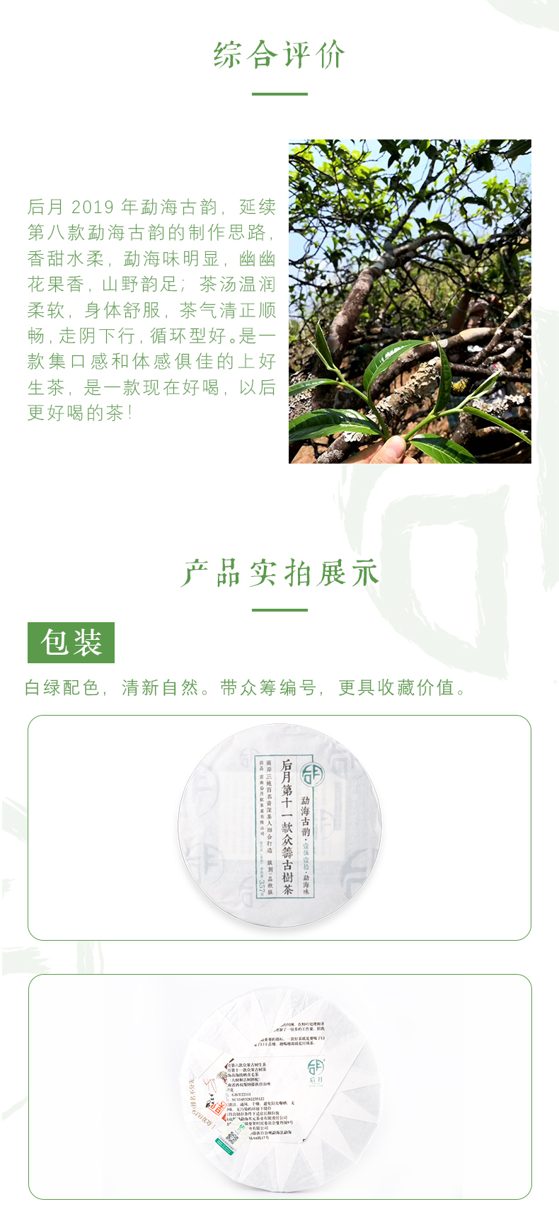 后月 众筹十一 勐海古韵 普洱茶 生茶 2019年/357g/饼 品饮级 第十一款众筹古树茶