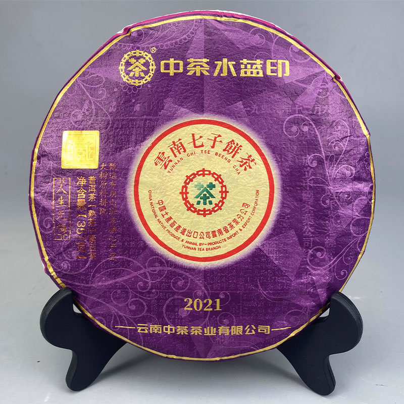 中茶水蓝印 普洱茶(熟茶)紧压茶 甄选云南省布朗山班章核心产区大树原料,适度发酵,自然陈化,精诚拼配,精细加工。