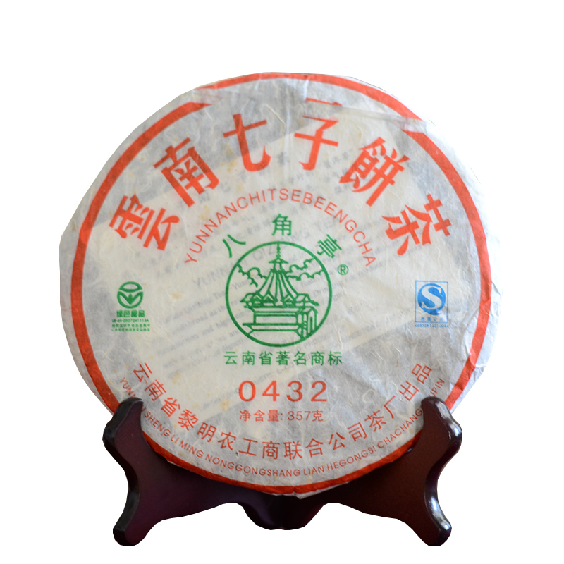 0432包装棉纸呈现的是绿色、红色、白色相间,色彩鲜艳,根根银丝清楚可见,说明了当年纸的古老,0432是黎明普洱经典唛号茶,选料级别很高。第三位数字代表的就是所选茶青的级别。包装简单明了,介绍了0432的出厂信息,但是从泛白的银丝棉纸可以看出,经历了时间的洗礼。在岁月里慢慢转化沉淀。