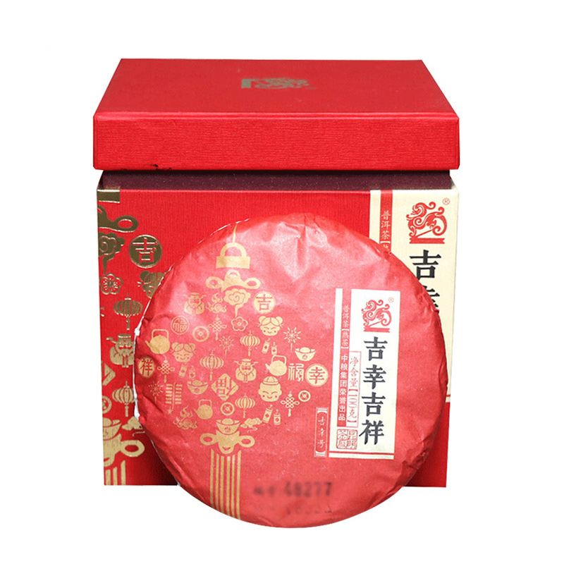 吉幸牌——“吉幸吉祥 普洱茶 熟茶“外盒包装设计精巧雅致,观之如满月盈盈;用料考究上乘,品之如沐春风;中国传统吉祥如意结,寓意喜乐吉祥,包含浓情厚意,是喜庆佳节馈赠、品鉴的心仪尚品。