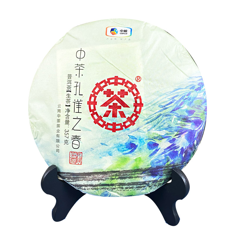 中茶孔雀之春 普洱茶(生茶)精选云南省西双版纳州高山茶区优质茶菁为原料,传统晒青工艺加工,后经蒸压成型。每饼净重357g,饼形圆整大气,松紧适度,厚薄均匀,饼面条索肥壮,色泽墨绿显白毫;汤色黄绿明亮,香气清香高扬,滋味醇厚,收敛性强,回味甘甜,叶底黄绿、柔软有弹性。是您聚友品饮、收藏的上佳选择。