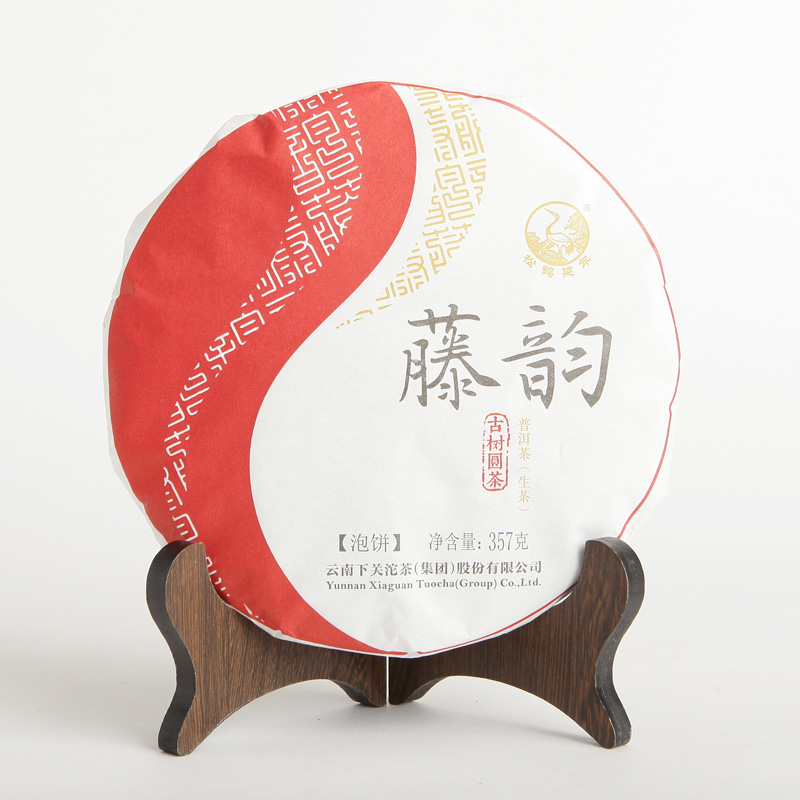 下关藤韵古树圆茶,甄选云南临沧双江县海拔1900米以上坝糯古茶园中明前藤条茶叶,经藤条茶传统独特的加工技艺精制而成的晒青毛茶,并在大理高原仓储放一段时间后,经下关传统加工技艺蒸压而成。