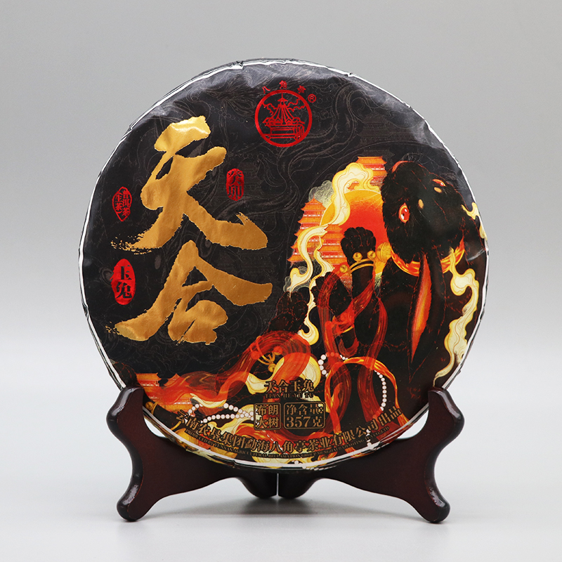此款天合玉兔生茶选用布朗山大树优质春茶为原料,匠心拼配,将布朗山霸烈浓酽之韵和浓郁蜜香无缝的呈现在您的舌尖,让您兔年一品惊喜。