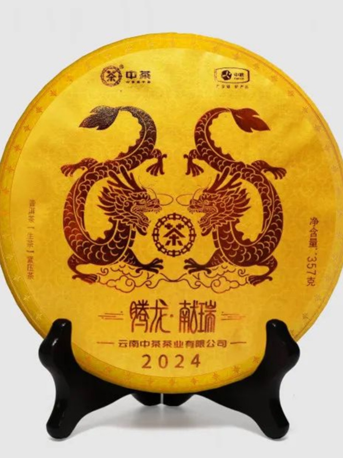中茶腾龙献瑞 普洱茶(生茶)紧压茶,甄选澜沧江流域优质原料,传统工艺,制以匠心,精工细作,严控品质。饼形圆正,条索紧结,墨绿润泽,芽毫显露;汤色金黄,金光潋滟;蜜香怡人,馥郁雅致,滋味浓醇,沉稳内敛,底蕴厚重,喉韵甘润。