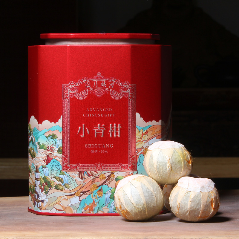 小青柑用的是每年7月份“未成年”的新会柑,色泽青润,油润饱满,柑味强烈,香气清爽;配上3年宫廷普洱为配料,整体滋味醇正饱满,前6泡轻柔淡雅,6泡之后口感醇滑、绵长,入口甘醇,令人回味。最后就是耐泡!耐泡!