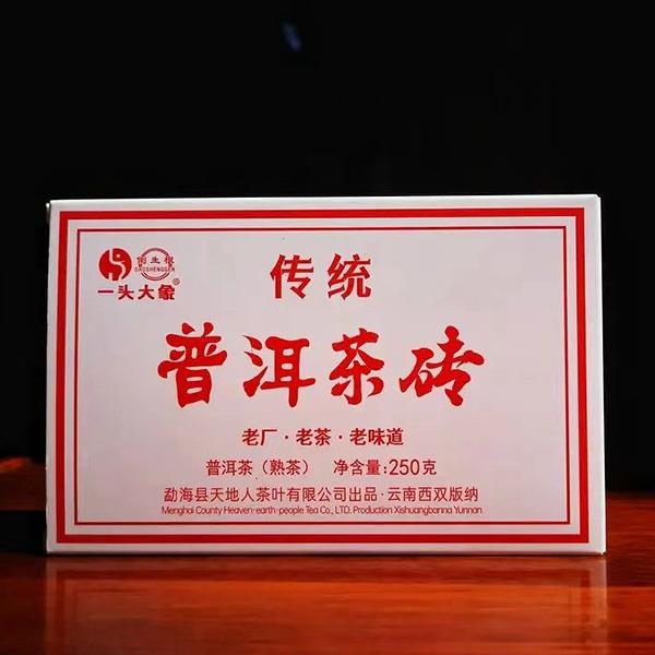 一头大象传统普洱茶砖,精选云南勐海茶区多年自然陈化的大叶种晒青毛茶为原料,在传统经典『普洱茶砖』配方的基础上,重新优化拼配方案,以1级茶为主原料,由拥有30余年制茶技艺、经验的天地人茶厂,经传统工艺精制而成。