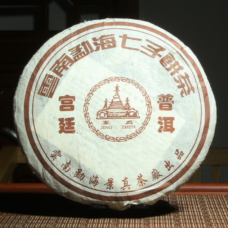 本品选用云南省勐海茶区,宫廷原料压制,茶饼选料精细,饼型端正,松紧适度,汤色鲜红透亮,口感厚实,久泡有余香,无杂味。是自饮、收藏、送礼的极品。