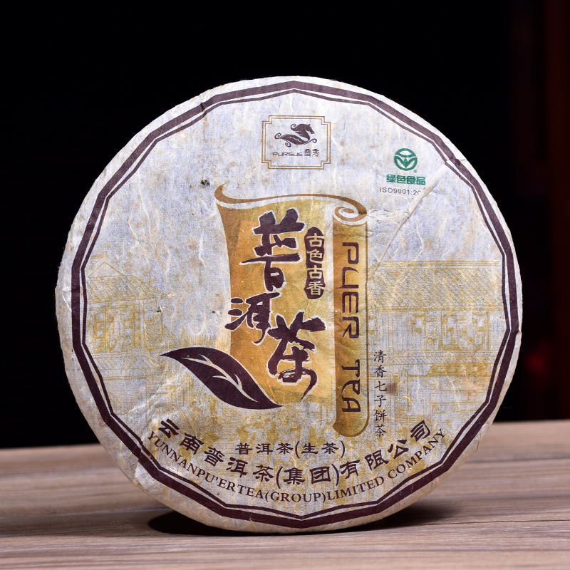 古色古香青饼为普秀“三香”(国色天香、古色古香、悦色怡香)系列之一。其精选云南普洱茶区头春大树茶为原料,经传统工艺精制而成,自然干仓存放近20年;饼面棉纸包装干燥完好,稍有油点;其饼型端正,厚薄均匀,松紧适度,干茶色泽黄褐,油润显毫,香气浓郁;汤色金黄透亮,花蜜香浓郁,滋味醇厚,回甘持久,甜感突出,叶底柔韧有活性,经久耐泡。