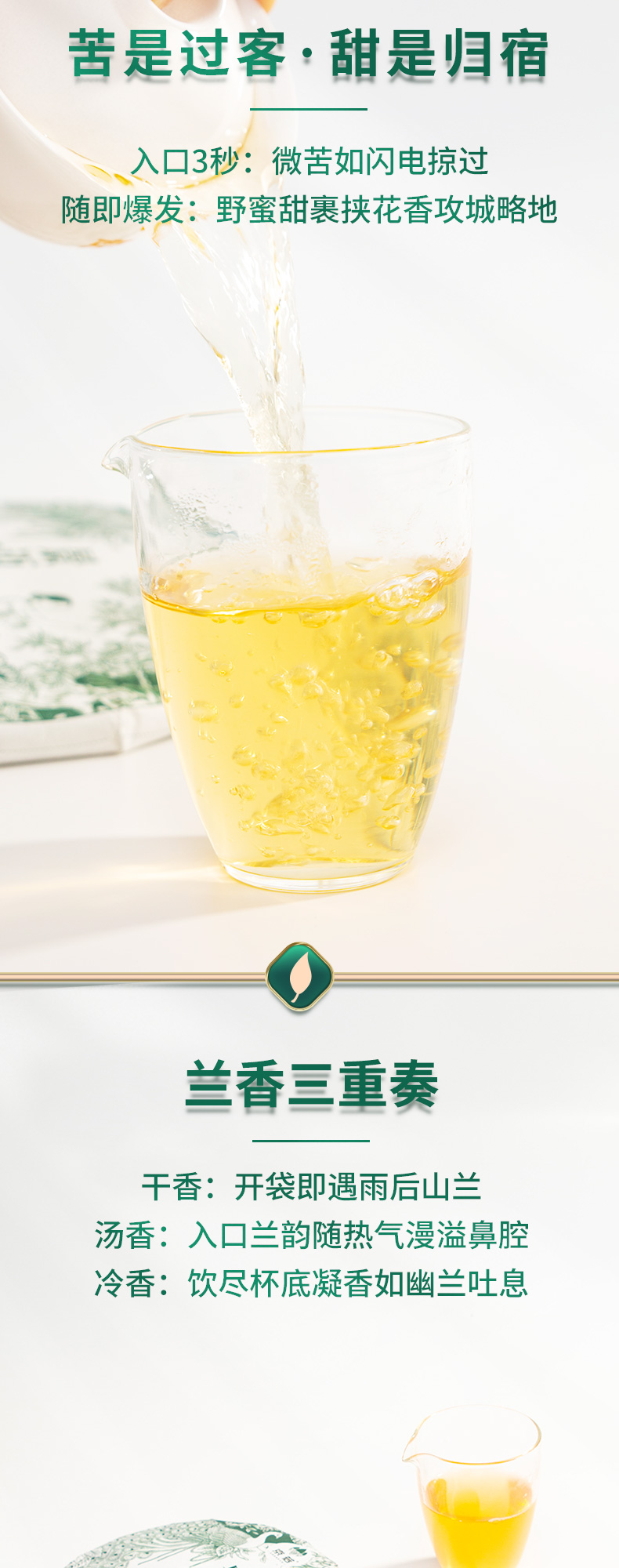 兰花蜜蜜韵,滋味醇厚,回甘持久,甜感突出