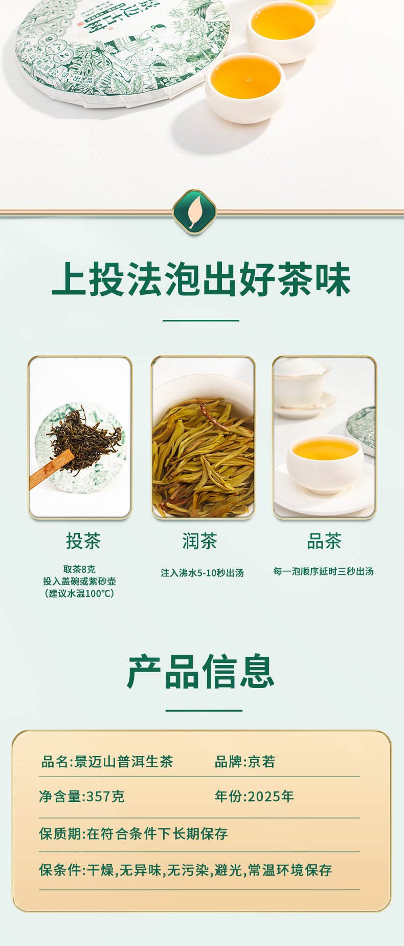 【新品特惠】京若 景迈山古树普洱生茶云南普洱茶茶叶茶中香妃兰香迷人野韵十足