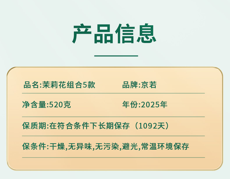 3. 茉莉大白毫绿茶:茉莉鲜灵清新,白毫显露,滋味清甜爽口,回甘明显。