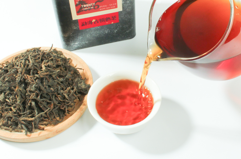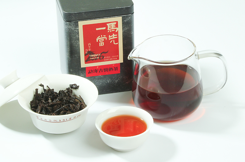 本品选用云南省勐海县茶区,头春乔木晒青毛茶为原料,经传统工艺制作,适度发酵,精制而成,又在昆明存放5年。该茶选料精细,条索完整,金毫显,汤色鲜红透亮,口感厚实,久泡有余香,无杂味。是自饮、收藏、送礼的极品。